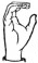 На ћирилици написано САРА МРЂЕН састоји се из 9 слова [?]. Исписано ћириличном једноручном азбуком за глувонеме: